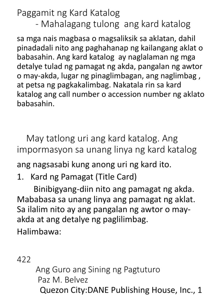 CONCLUSION SA Humadapnon Author Author o May-akda Ng Humadapnon Tagalog. Kapag pinag-uusapan natin- ano ang ibig sabihin ng pag-ibig dapat nating banggitin ang pagiging tugma. May tatlong uri ng kard katalog na inuri sa awtor paksa at pamagat ng aklat.