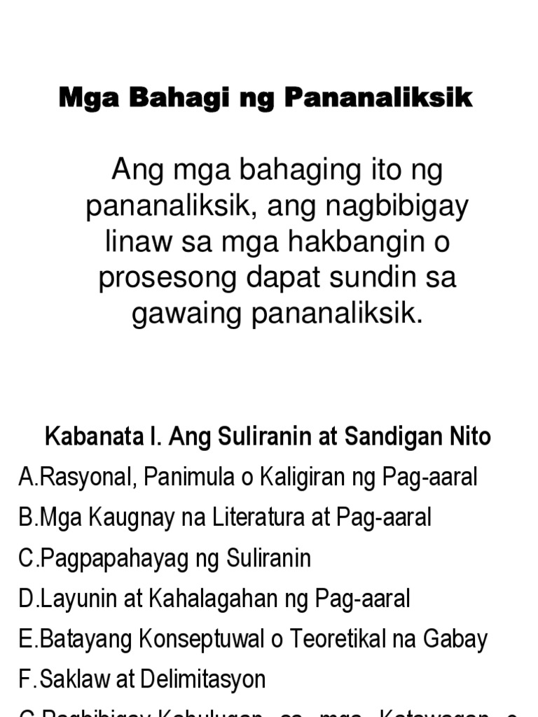 Kabanata I Mga Bahagi Ng Pananaliksik Pdf