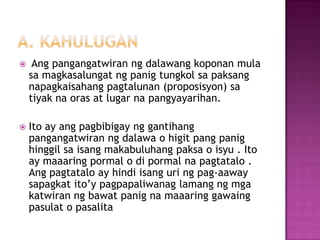 PANGANGATWIRAN - Itoay isang pahpapahayagnanagbibigayngsapat na katibayanopatunayupangang isang panukalaay magingkatanggap - tanggap o kapani-paniwala. Salamat sa inyong maiiging pagbabasa.