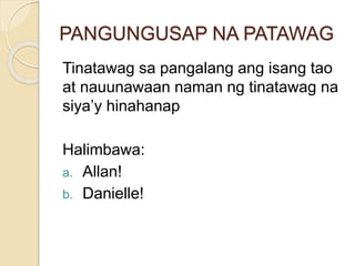 Ang mga panghalip mga interogatibo ay ang mga panghalip na iyon ito pinapalitan nila ang isang paksa na may layuning magtanong. Ay isang halimbawa ng pangungusap na padamdam Tanghali na. Araw-araw ko siyang kinukumusta.