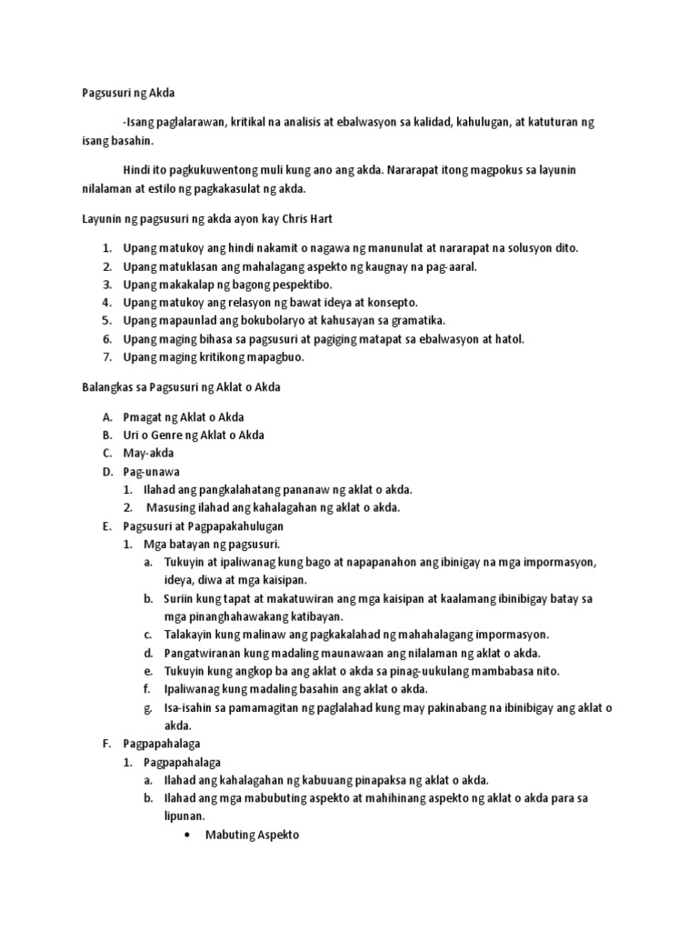 Halimbawa Ng Balangkas Sa Pagsusuri Ng Aklat O Akda