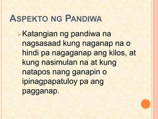 Ito ang pinag-uusapan o pinagtutuunan ng pansin sa isang pangungusap. -naglalarawan sa simuno o paksa. Ito ay may panandang ang o si.