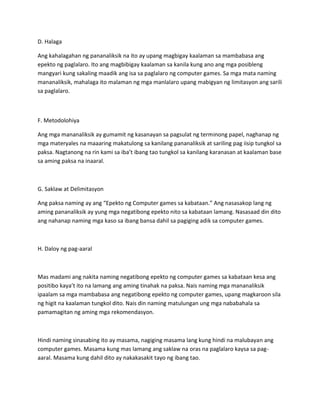 Epekto ng Droga sa mga estdyanteng nagsisimula pa lamang gumamit nito Kombinasyon Para mas maging tiyak o. Kaibigan at Guro. Pagtitipon n g sapat na datos at kaalaman ang mananaliksik ay naghanda.