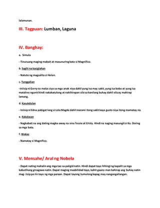 Mga Tauhan. De los Reyes ang direktor ng pelikulang kinabibidahan nina Albert Martinez Lorna Tolentino at Jiro Manio bilang Magnifico. Isang Katuparan sa Filipino 6 Pagsusuri ng nobela Ipinasa ni.