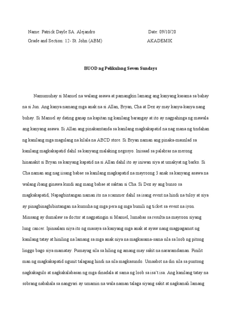 Repleksiyong Sa Pelikulang Hinggil Sa Seven Sundays Information Technology Studocu