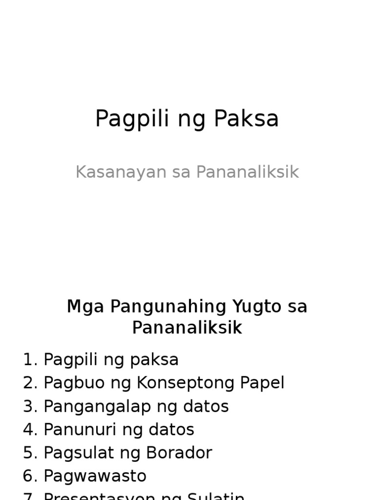 Ang ilang mga karaniwang paksa ng pananaliksik ay kasama ang pagpapalaglag pagkontrol ng kapanganakan pag-abuso sa bata pagkontrol ng baril kasaysayan pagbabago. IManong Sepulturero Hukay tayo. Mga Mungkahing Paksa Sa PananaliksikIsang.