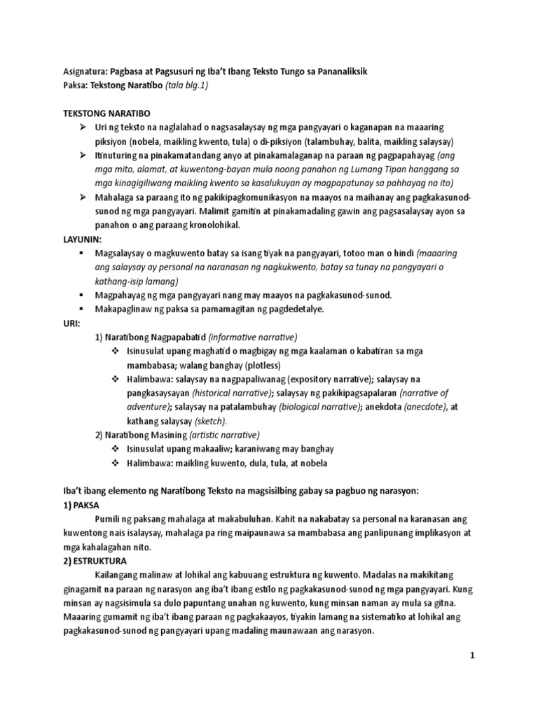 Start studying Tekstong Naratibo. Nakasusulat ng ilang halimbawa ng ibat ibang uri ng teksto. MGA ELEMENTO NG TEKSTONG NARATIBO 1.