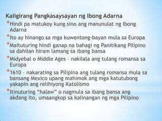 Anong uri ng akdang pampanitikan ang ibong adarna - 1275303 kurtsoliman kurtsoliman 28012018 Filipino Junior High School answered Anong uri ng akdang pampanitikan ang ibong adarna 1 See answer Advertisement Advertisement loyaldj24 loyaldj24. Una ng Ibong Adarna ay kakikitaan ng paraan ng pamumuhay ng mga Europeo. Ibong Adarna Buod Kabanata 46.