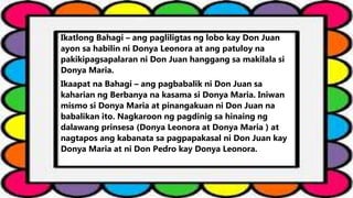 Ibong Adarna Buod ng Bawat Kabanata 1-46 with Talasalitaan. Magbigay ng dalawang kaugalian ng Pilipino na masasalamin sa Ibong Adarna mula sa nabanggit at tinalakay. Muli napagbintangan na may kasalanan si Don Juan.