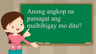 View pagbibigay paksa sa kuwentopptx from FILIPINO 5 at Philippine Normal University. Naisasalaysay muli ang napakinggang teksto sa pamamagitan ng pagsasadula F5PS-Ic-f-61.